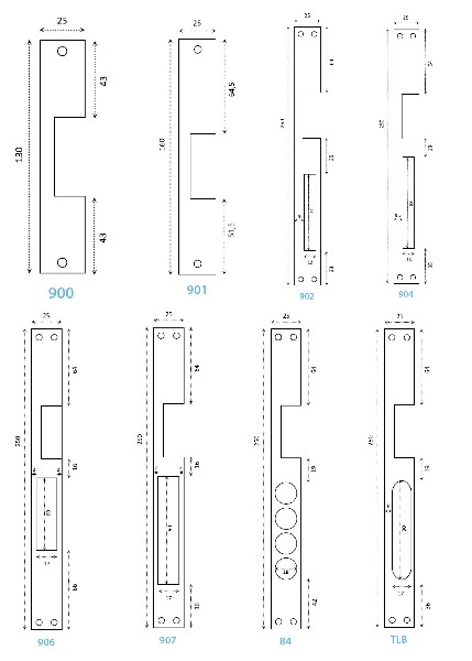 Es posible montar distintas armaduras: modelo 900, 901 y 902 ( ver foto para las medidas )