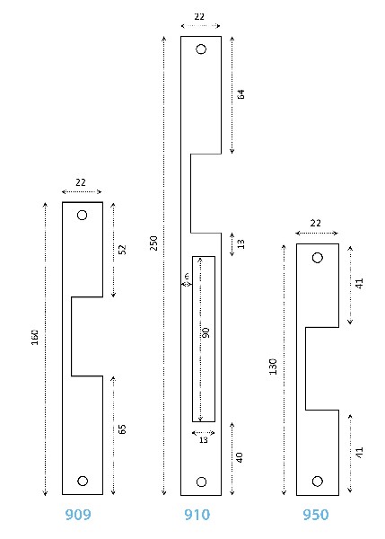 Es posible montar distintas armaduras: modelo 909, 910 y 950 ( ver foto para las medidas )