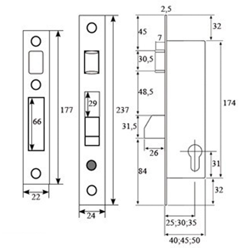 CERRADURA BYP CARPINTERIA METALICA 25mm RODIL. Y P.BASC. CON CILINDRO INTHER MODELO I5 I53030N