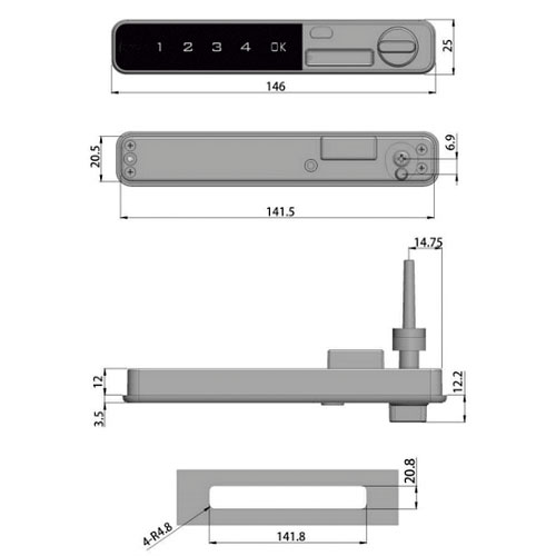 CERRADURA COMBINACION ELECTRONICA 4 DIGITOS HORIZ. CAJON