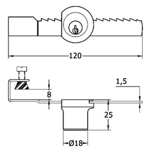 CERRADURA PUERTA CORREDERA CRISTAL Ø18 L120 LLAVE SERRETA