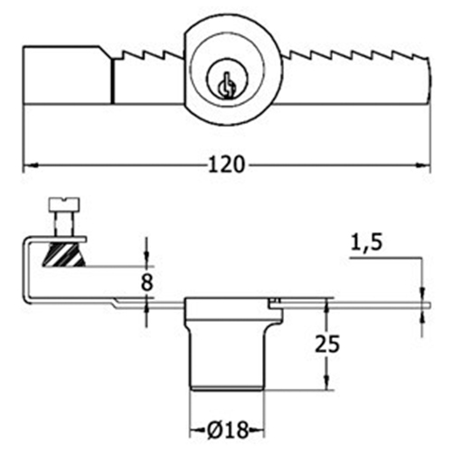 CERRADURA PTA. CORREDERA CRISTAL Ø18 L120 LL. SERRETA IGUALE