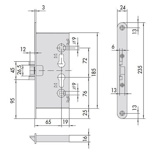 CERRADURA CISA CORTAFUEGO ANTIPAN. CON PALANCA Y CUAD. PARTIDO