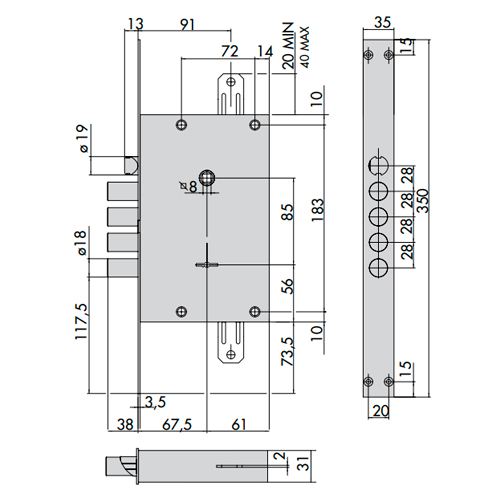 CERRADURA CISA EMBUTIDA SEGURIDAD 57535 S/VAR. 3 LLAVES