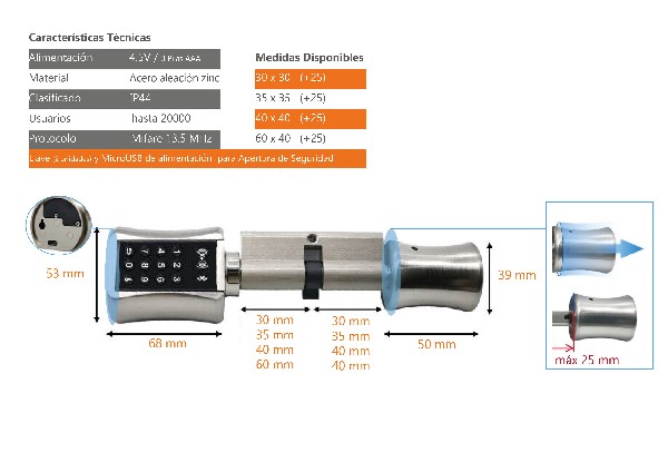 Cilindro electrónico apto para cualquier tipo de puerta y de fácil instalación en cerraduras ya existentes, nuestro cilindro CIEL es la solución para la mayoría de áreas restringidas.