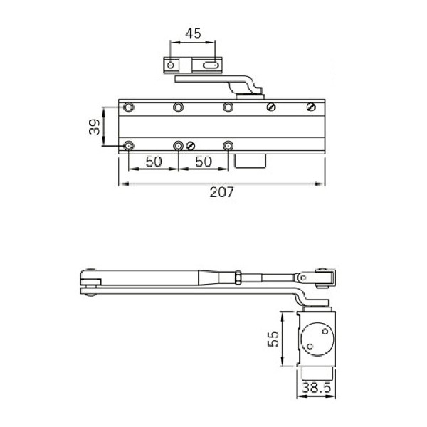 Cierrapuertas de brazo articulado CTB72 color blanco.