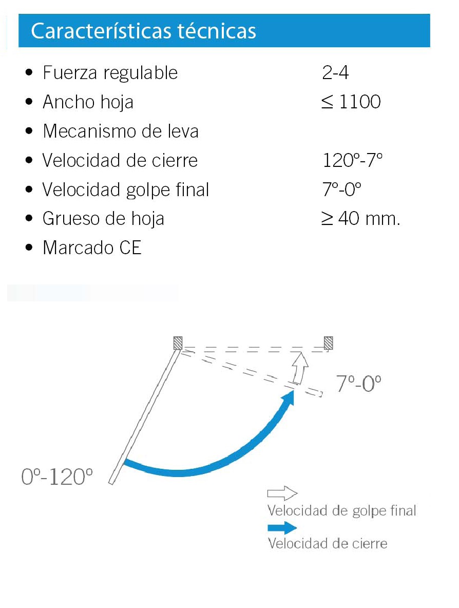 Regulación velocidad de cierre:120º-10º