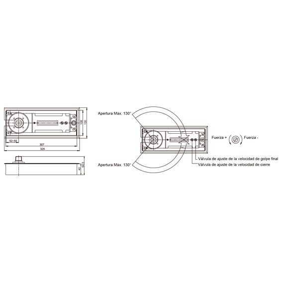 Regulación de la velocidad de cierre:130º-15º