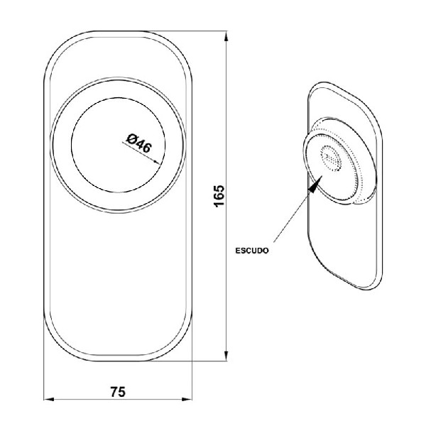 Las medidas de la placa son 165x74mm, el cajeado para el escudo tiene un diámetro de 46mm