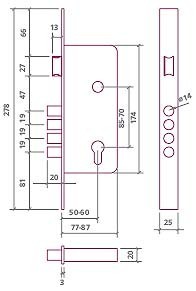 CERRADURA SEGURIDAD EMBUTIR EZCURRA 700B-50 mm C/R LT