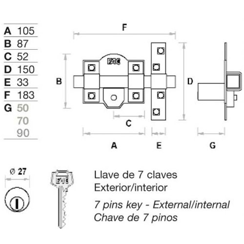 CERROJO FAC 101L/105 LLAVE/LLAVE PINTADO