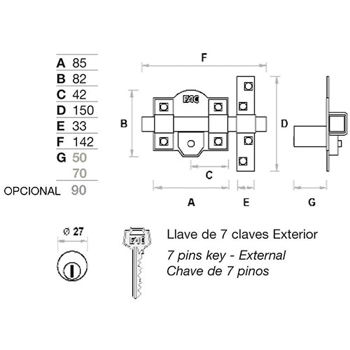 CERROJO FAC 201R/80 LLAVE/PULSADOR PINTADO