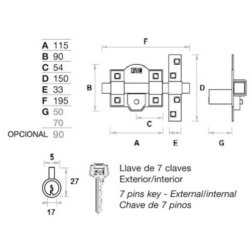 CERROJO FAC 302L/115 LLAVE /LLAVE , ACABADO NIQUEL , MANO DERECHA