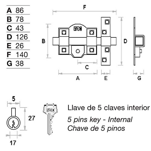 CERROJO FAC 91C/80 LLAVE/LLAVE PINTADO