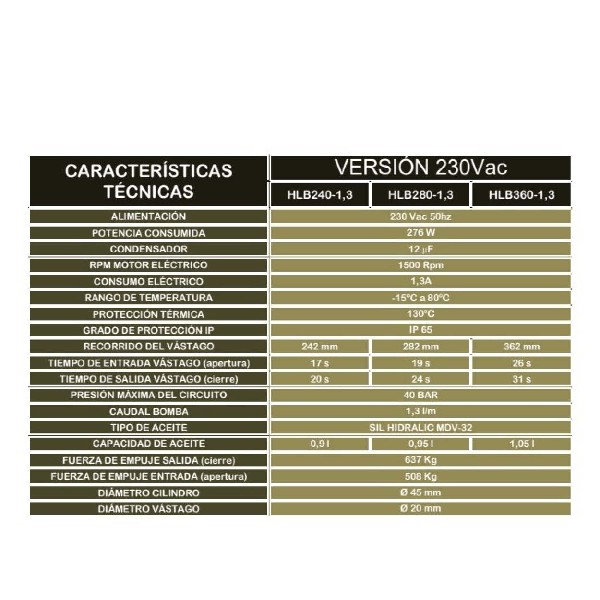 Incorpora sistema patentado de anillo regulable en el vástago para ajustarlos grados de apertura. Carrera del vástago de 362mm. Las versiones BAC está provista de un sistema universal que permite seleccionar el funcionamiento (Reversible, bloqueado o semi-bloqueado) individualmente en cada maniobra