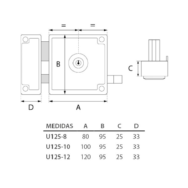 Cerradura HEPROTEC / INTHER modelo 125 de sobreponer