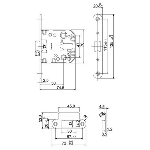 PICAPORTE INTHER 2000/47/50 mm CANTOS REDONDOS, INOX