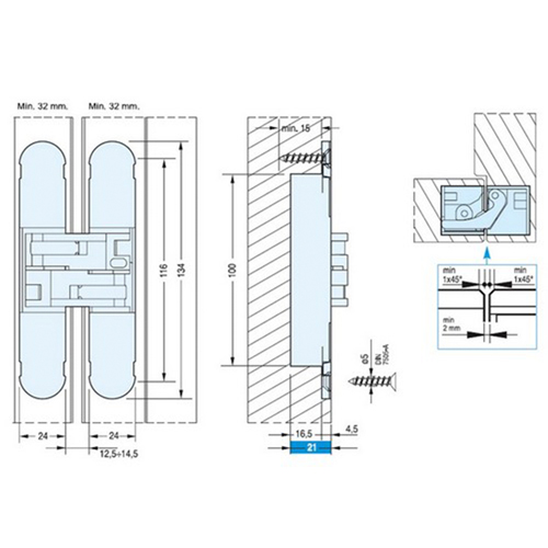 BISAGRA OCULTA INTHER ALFA30 60 Kg (3B) PLATA