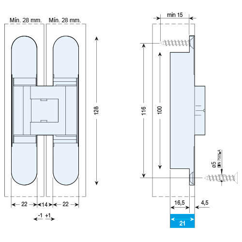 – Grosor mínimo de puerta 28 mm.