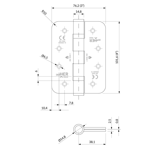 BISAGRA PROYECTO G13 INTHER 1076CRC 120 Kg INOX