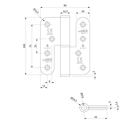 BISAGRA PROYECTO G13 INTHER 1086CR DCHA. 120 Kg INOX 316