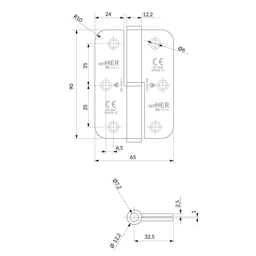 BISAGRA PROYECTO G12 INTHER 9065CRC IZDA. 100 Kg INOX 304
