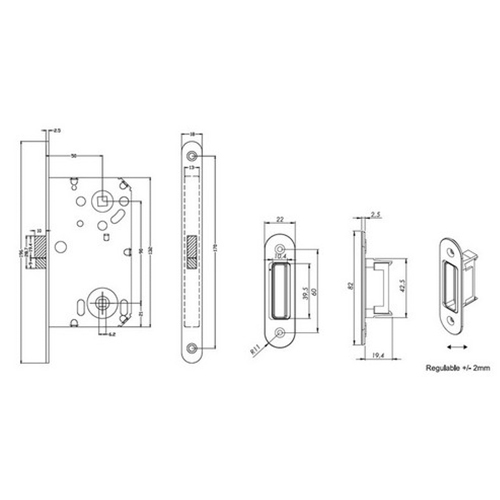 – Resbalón magnético y pestillo.