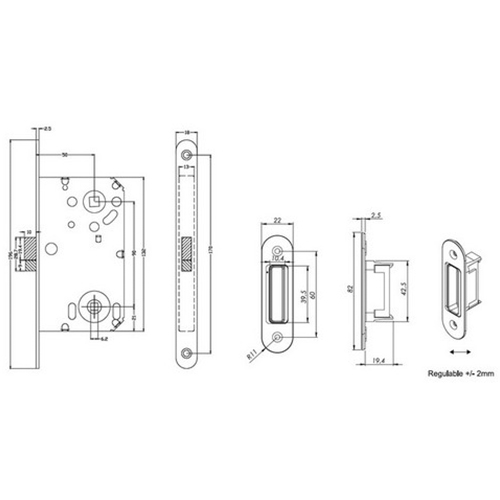 – Distancia entre ejes de 90 mm (gorja y condena).