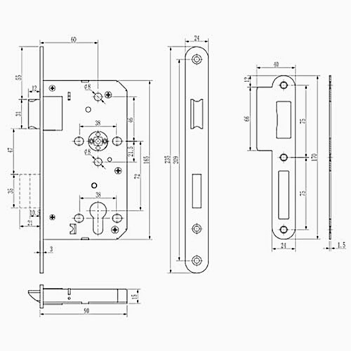 CERRADURA INTHER EMBUTIR ANTIPANICO SUPRA 60mm INOX 304 DCHA