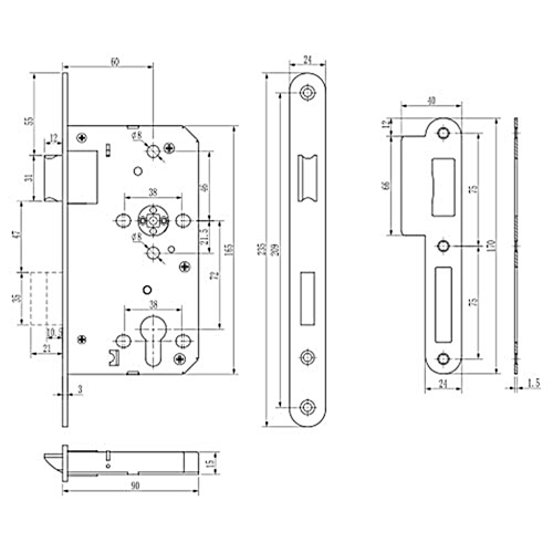 CERRADURA INTHER EMBUTIR ANTIPANICO SUPRA 60mm INOX 304 IZDA