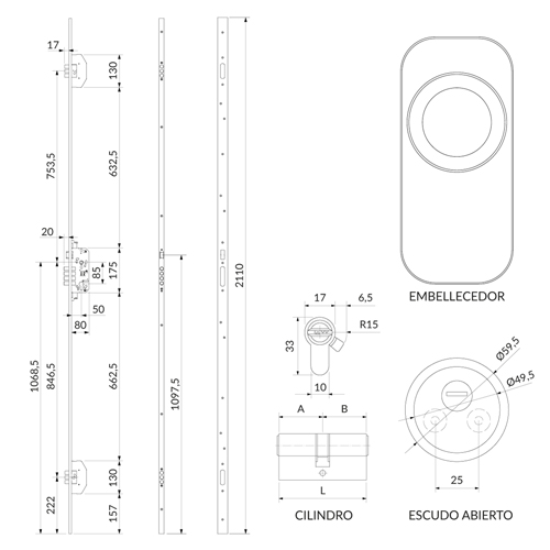 · Cerradura multipunto sobre perfil de acero en U20x10 mm.