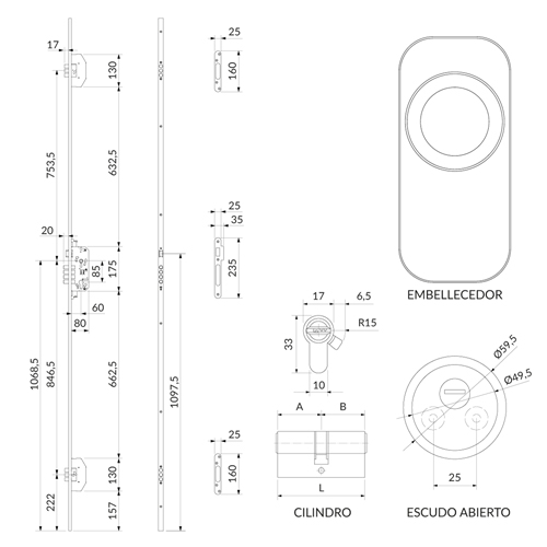 · Cerradura multipunto sobre perfil de acero en U20x10 mm.