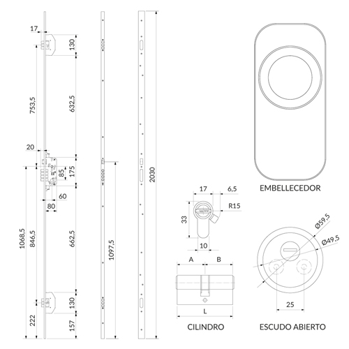 · Cerradura multipunto sobre perfil de acero en U20x10 mm.