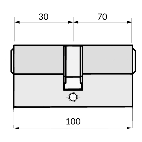 Cilindro de seguridad con llave de puntos plana reversible ideal para puertas de entrada.