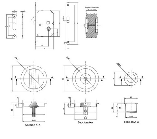 Kit para puertas correderas estándar, compuesto por cerradura, condena, dedal y cerradero.