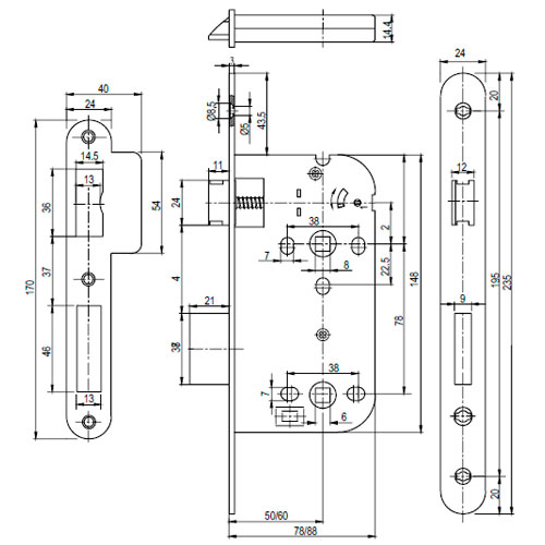 CERRADURA INTHER MEGA CONDENA 344-SIN F24/50 C/R INOX.