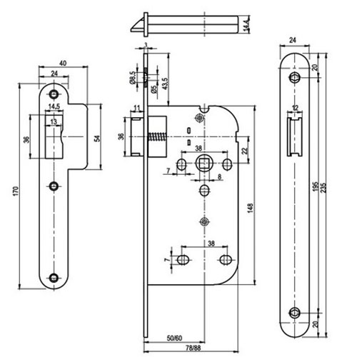 CERRADURA INTHER MEGA PASO 345/F20/50 C/R INOX