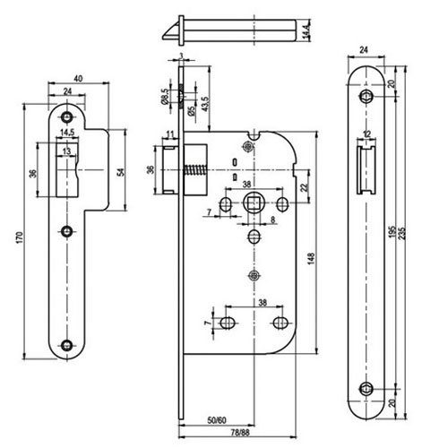 CERRADURA INTHER MEGA PASO 345/F24/60 C/R INOX