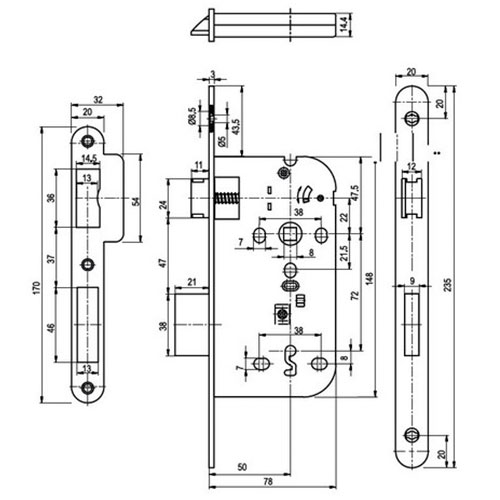CERRADURA INTHER 370/F20/50 C/R INOX. LLAVE GORJA SIMPLE