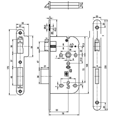CERRADURA INTHER 370/F24/50 C/R INOX. LLAVE GORJA SIMPLE