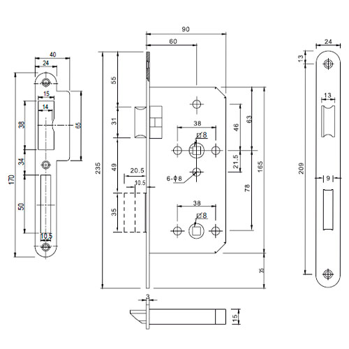 CERRADURA INTHER SUPRA CONDENA 544/F20/60 C/R INOX. SIN CILINDRO