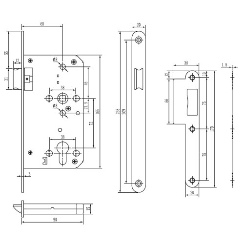 CERRADURA INTHER SUPRA PASO 545/F24/60 C/R INOX. SIN CILINDRO