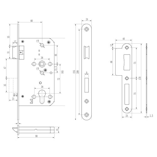 CERRADURA INTHER SUPRA 549/F24/60 C/R SS4 NEGRO SIN CILINDRO