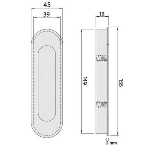 TIRADOR EMBUTIDO INTHER OVALADO TAPA C/MUELLE INOX 304