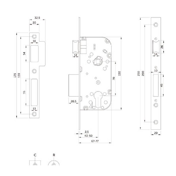 Cerradura de embutir Inther U130. Negra
