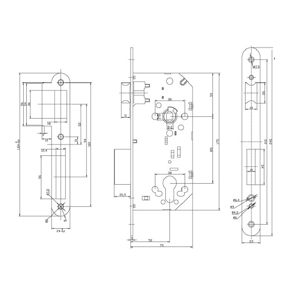 Cerradura U30 embutir con cilindro frente redondo efecto inox.