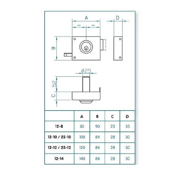 CERRADURA JIS 12-10 PINTADA DORADA IZQUIERDA. LLAVE Y TIRADOR. Acabado pintado dorado. Modelo no reversible: mano derecha o izquierda. 3 llaves de alpaca. Cilindrofijode 52 mm.
