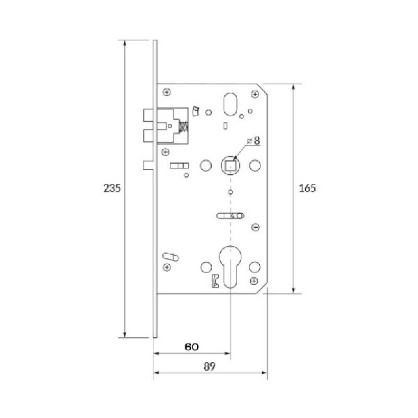 El juego de manillas se suministra con una cerradura anti pánico Reversible con entrada de 35, 50 o 60 mm.