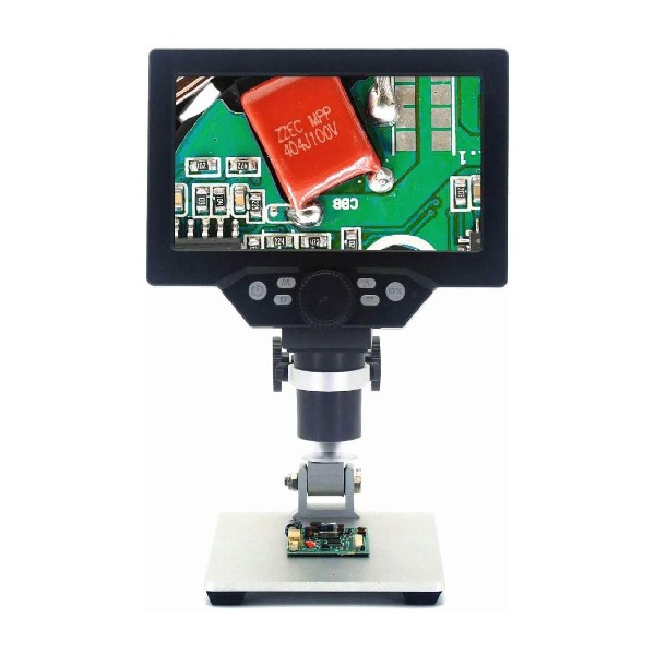 Microscopio Digital con capacidad de aumento de hasta 1200X . Tiene una pantalla de alta resolucion HD y está equipado con camaras digitales para realizar videos y fotos