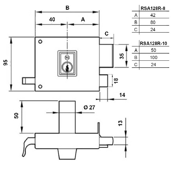 RSA125R-10PI (Caja de 100 mm y mano Izquierda)